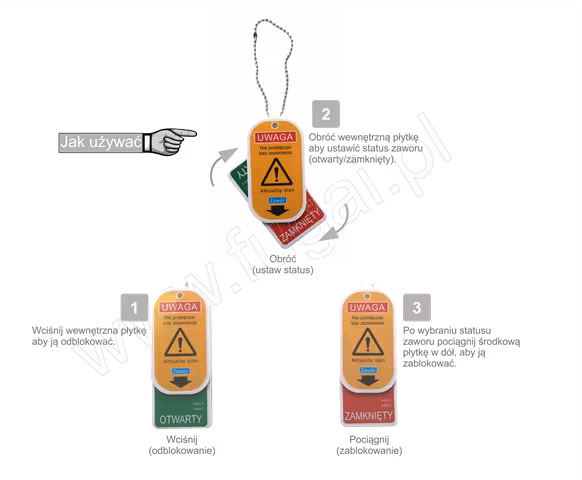 Etykieta obrotowa do oznaczania stanu zaworu (otwarty/zamknięty).